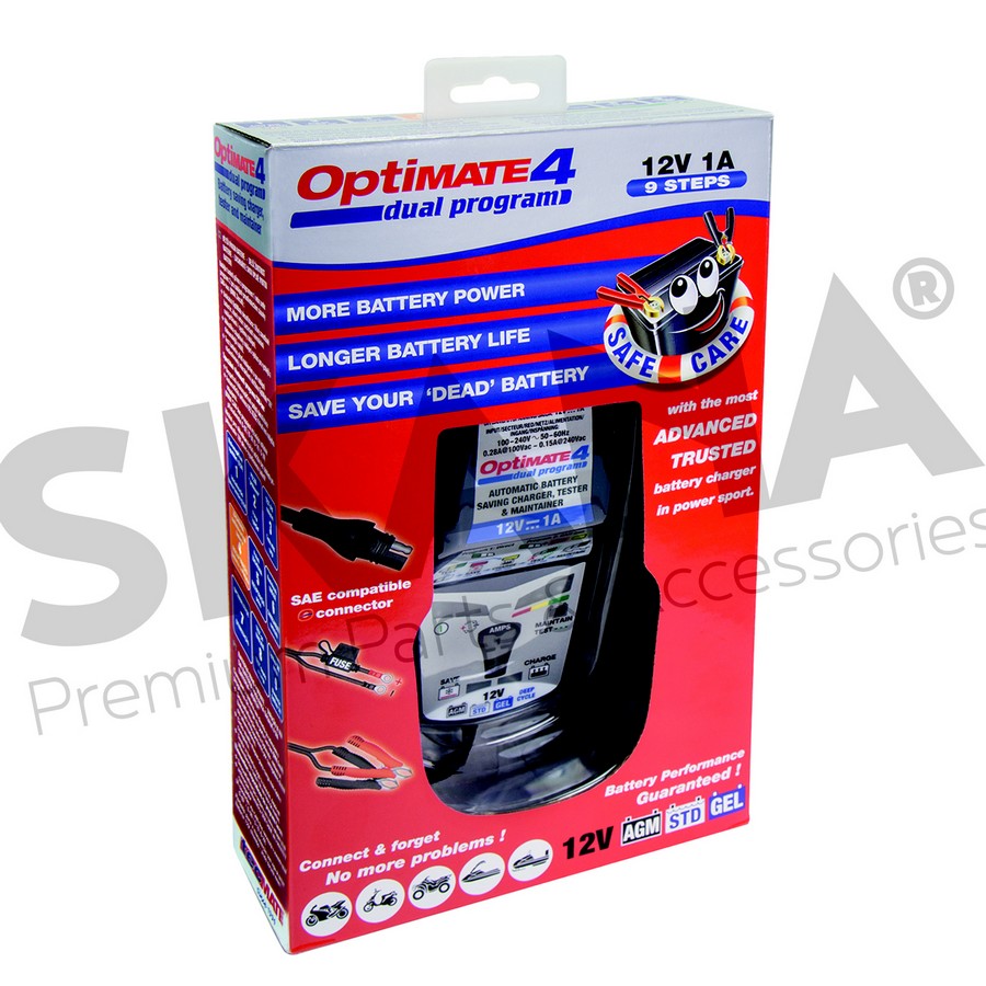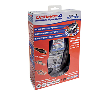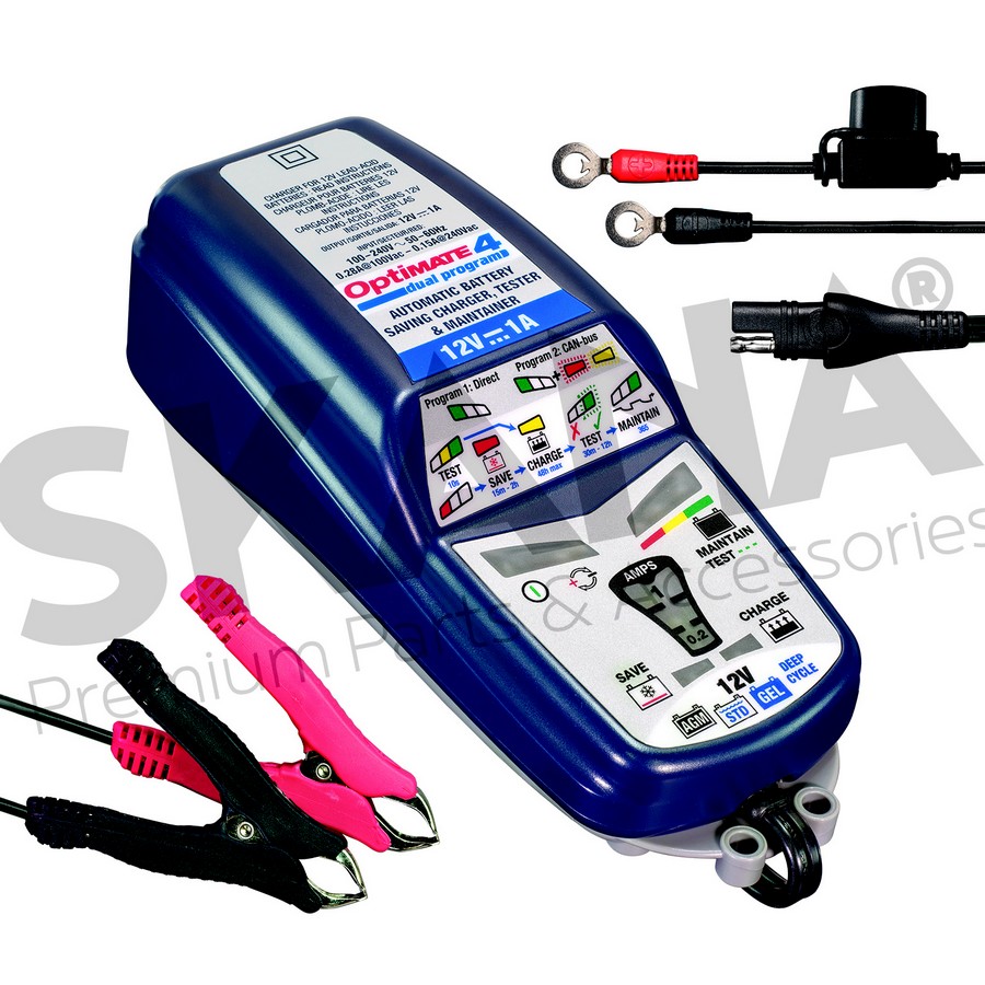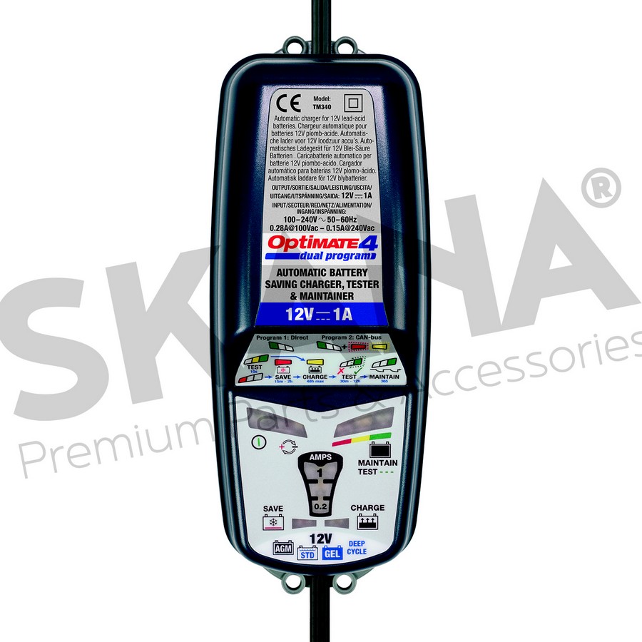 Battery charger OPTIMATE 4 DUAL, for 12 V batteries - Amp: 3 - 50 Ah - Loading charge: 1 A - With desulphation function - Advanced functions. User friendly battery check from start. Microprocessor running.