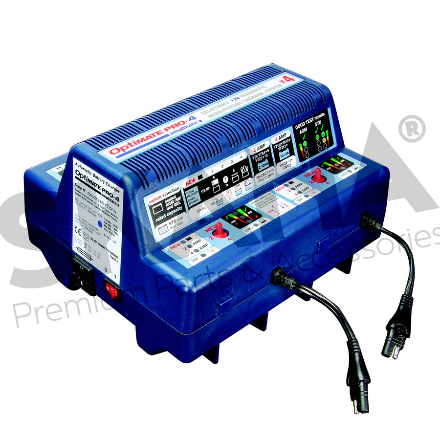 Battery charger OPTIMATE PRO-4 - for 4 x 12 V motorcycle batteries - Saves batteries as low as 0,5V - Charge series connected batteries - Ideal for large PTW workshops.