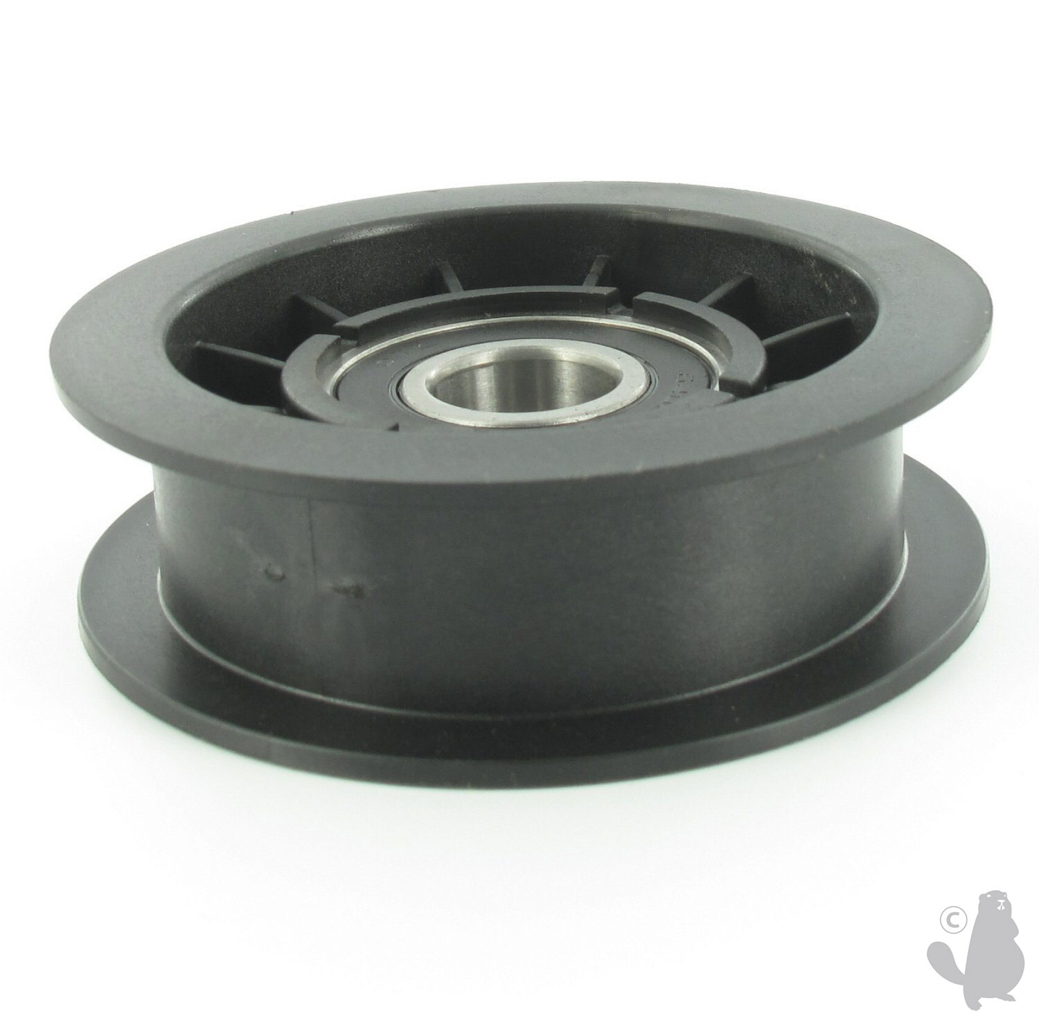 Poulie de traction à gorge plate sur roulement adaptable CASTELGARDEN et GGP pour machines SD98 et SD108. Remplace origine: 25601554/0 et 125601554/0. Ø: ext: 85,7mm, Ø int:17mm H: 27mm.