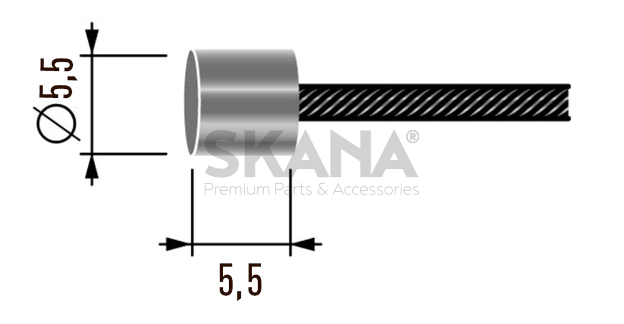 Câble souple universel à embout cylindrique de Ø: 5,5mm - Longueur totale : 2000mm Ø: 1,9mm