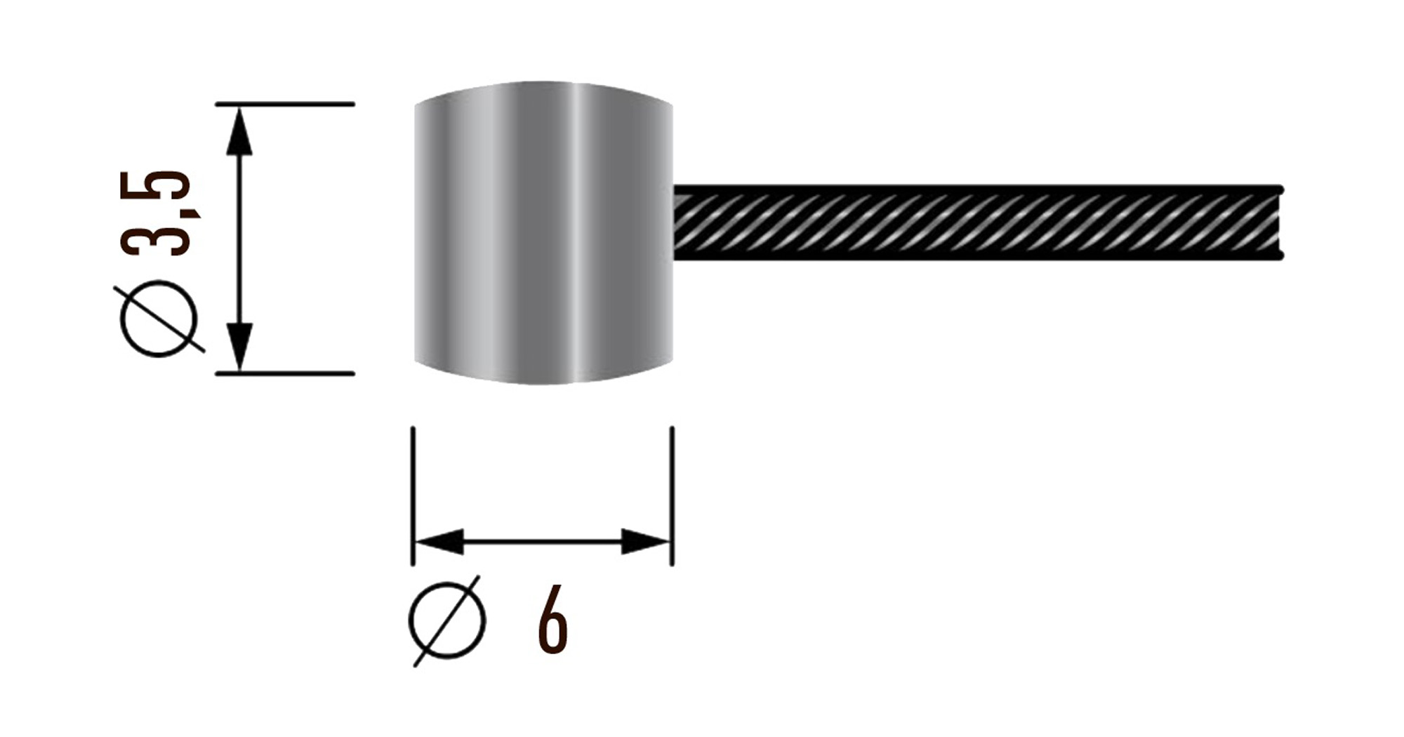 Câble souple à embout tonneau (Ø 6mm x L 3,5mm) - Longueur totale : 2200mm Ø: ext: 1,2mm.