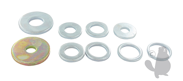 Blade reducer kit. Fits universal blades with 1" (25,4 mm) center holes. Kit contains: 2 cover washers, 10 mm, 12,7 mm, 14 mm, 16 mm, 18 mm, 19,5 mm and 21 mm reducers.