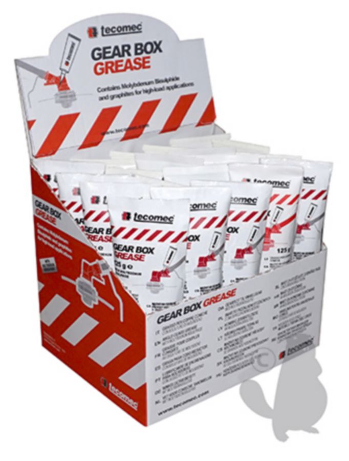 Graisse TECOMEC au bisulfure de molybdène, spéciale renvoi d'angles. 125g. A commander en carton-présentoirs de 20 cartouches.