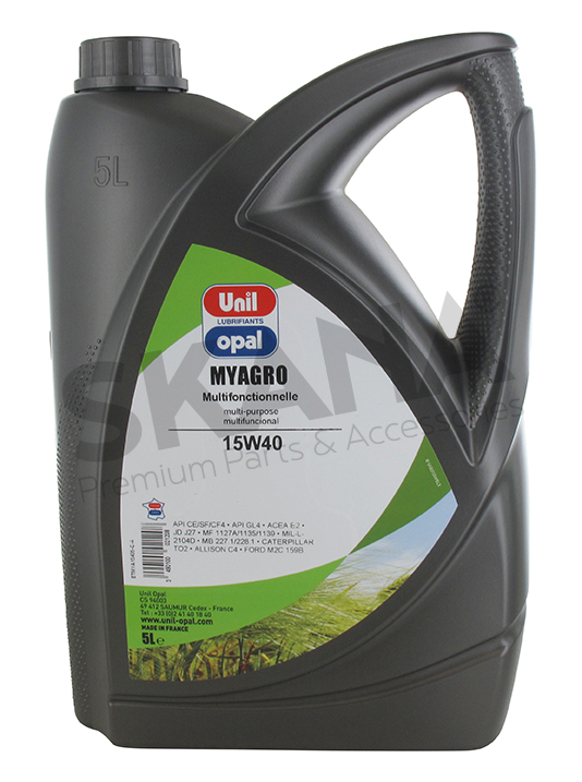 Huile à usage mixte (essence ou Diesel) 15W40 UNIL-OPAL MYAGRO. Bidon de 5 L.