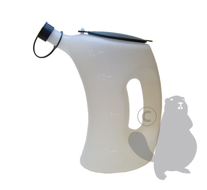 Broc gradué en plastique d'une contenance de 2 litres.