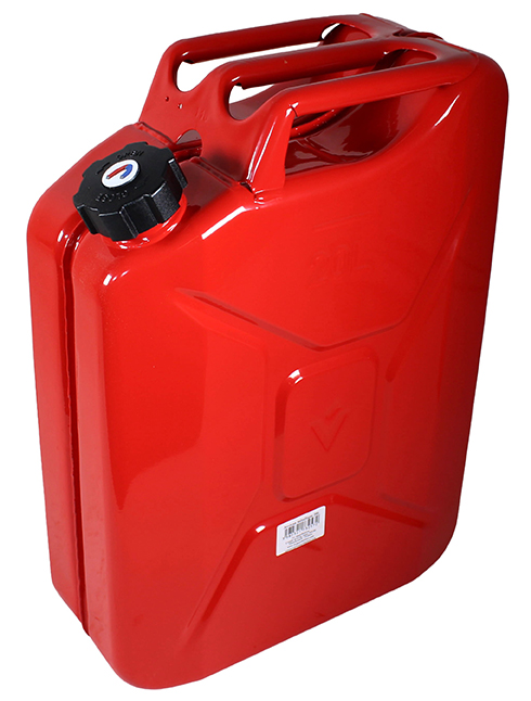 Jerrican métallique 20 litres. Peinture extérieure à la poudre de couleur rouge. Traitement intérieur antirouille et résistant à tout carburant. Fermeture à vis avec bouchon incorporant un aimant pour éviter toute perte. Certifié UL et TUV