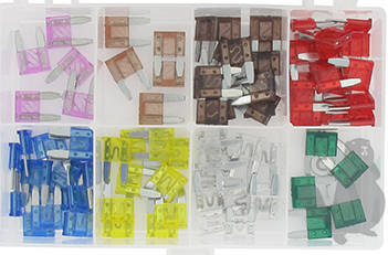 Coffret de fusibles "MINIVAL" de 3 à 30 AMP. Composé d'un assortiment de 80 pièces.