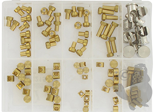 Assortiment d'embouts à souder pour câbles souples en acier. Contient 120 pièces.