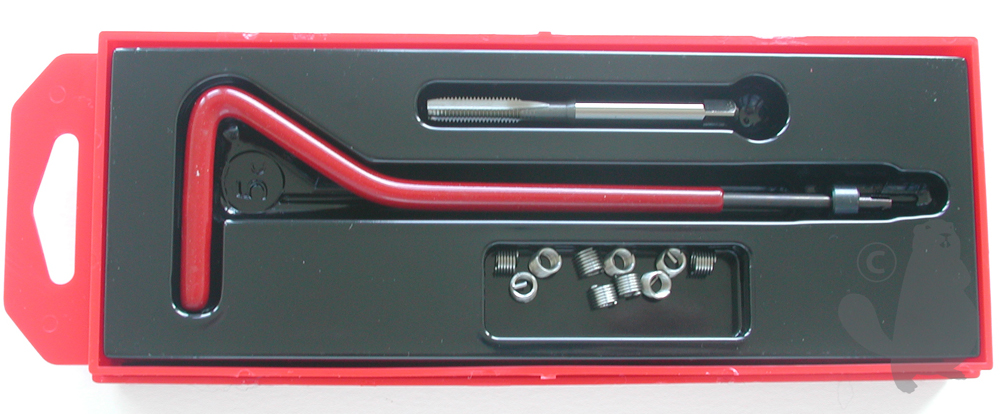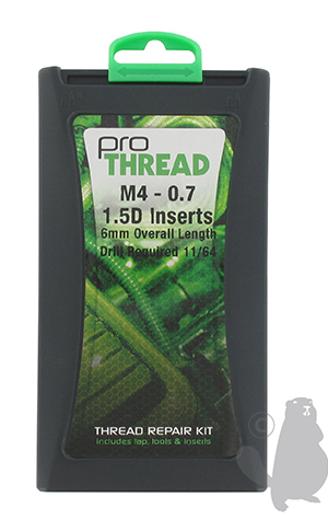 Pochette de réparation M4 x 0,7 pour filetages endommagés, livré avec outillage et inserts.
