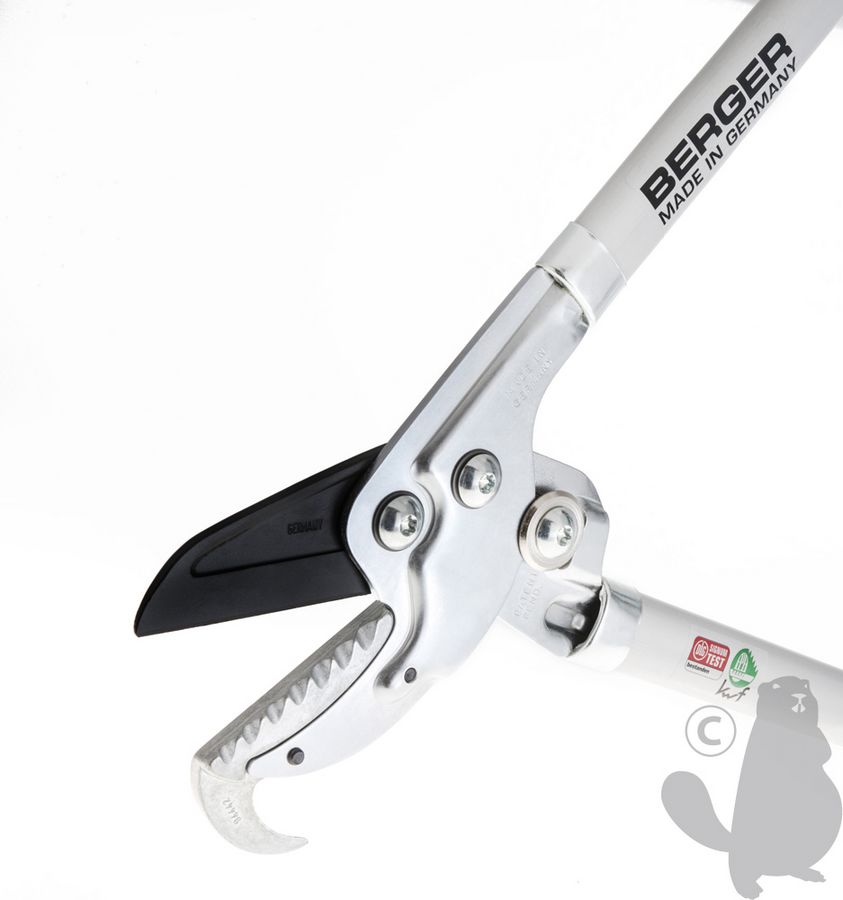 Coupe branches à enclume BERGER - Lame acier chromé avec crochet permettant d'enlever les branches emmêlées. Démultiplication de force. Ø de coupe 40mm.