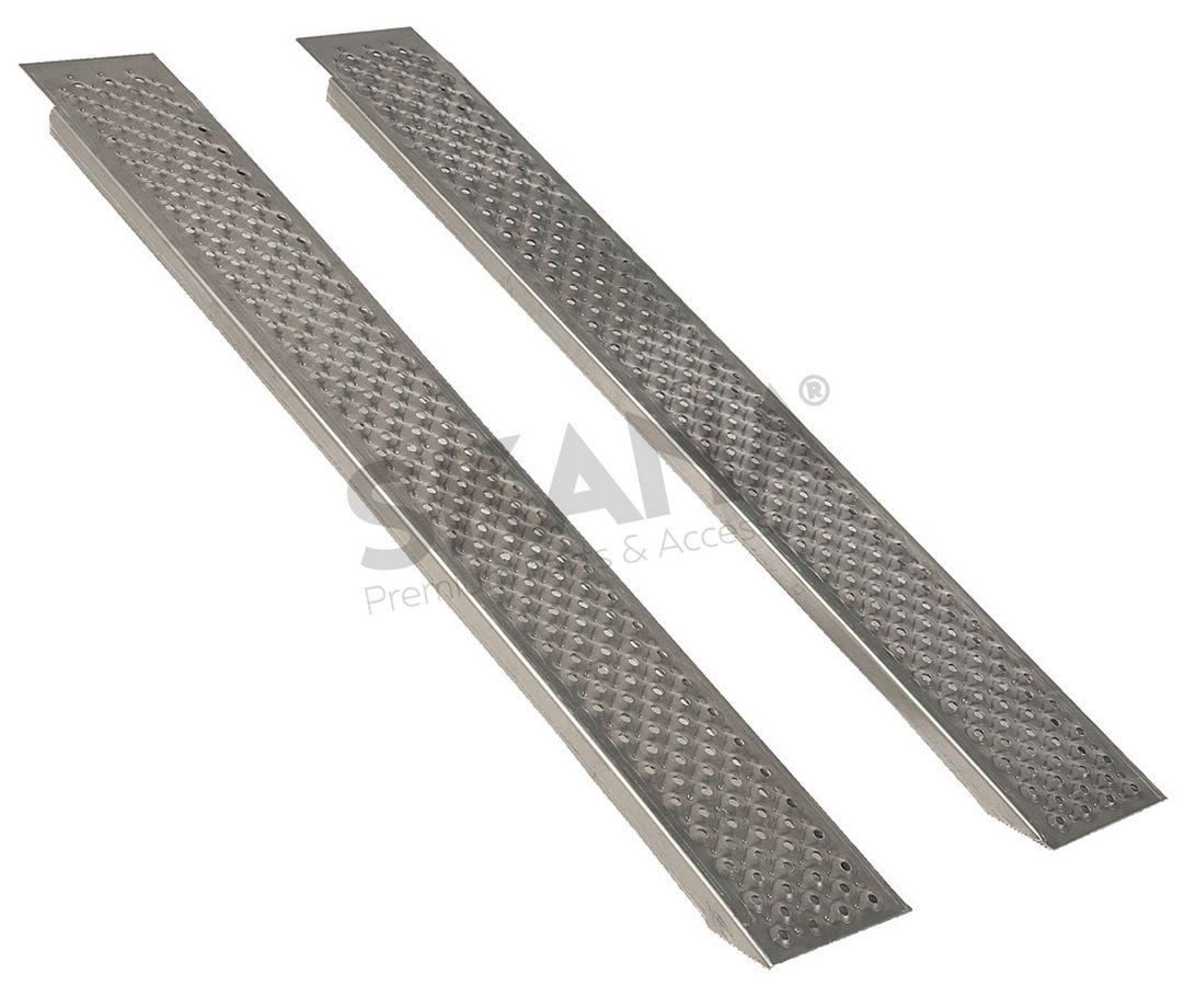 Jeu de 2 rampes droites aluminium L: 250cm l: 26 cm, profil antidérapant d'une capacité maximum de 1000kg/paire.