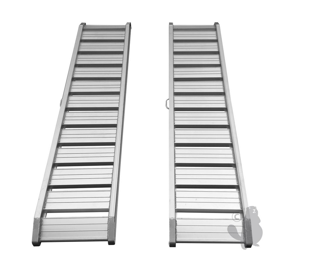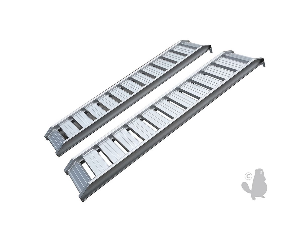 Jeu de 2 rampes alu droite. Longueur 200cm, largeur 37cm, d'une capacité maximum de 1600kg/paire.