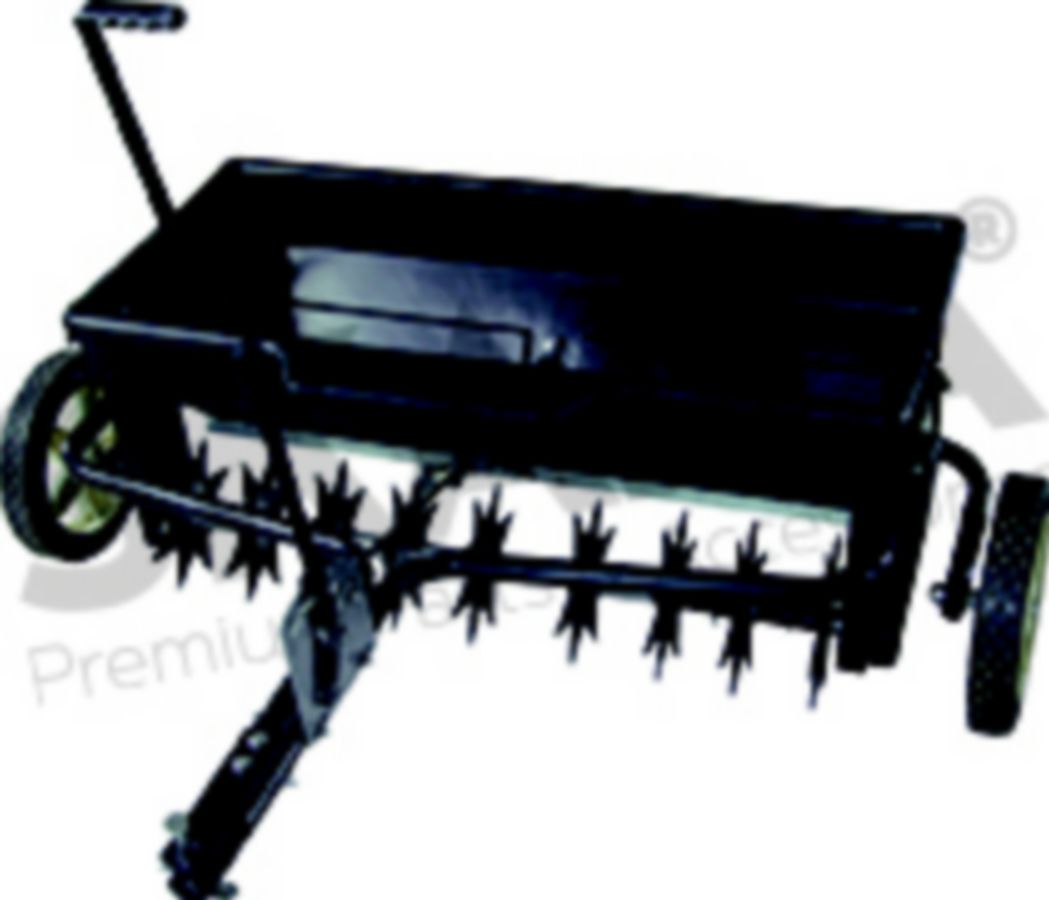 Aérateur + épandeur d’engrais Aérateur + épandeur d’engrais Largeur de travail 80 cm Capacité 45 kg avec réglage de débit Bac d’épandage solide en polyéthylène