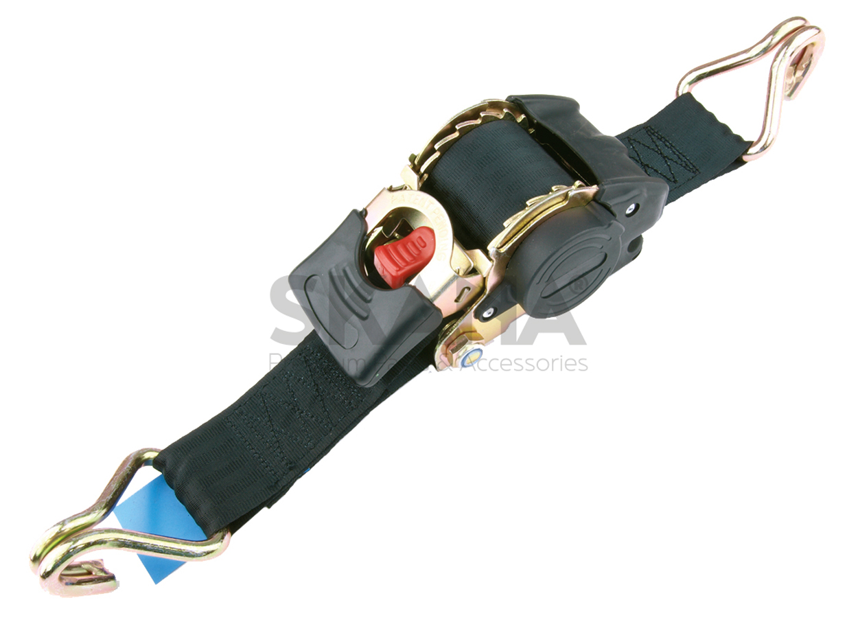 Sangle d'arrimage automatique. 3 m x 25 mm. Crochet en J. Capacité 250 kg.