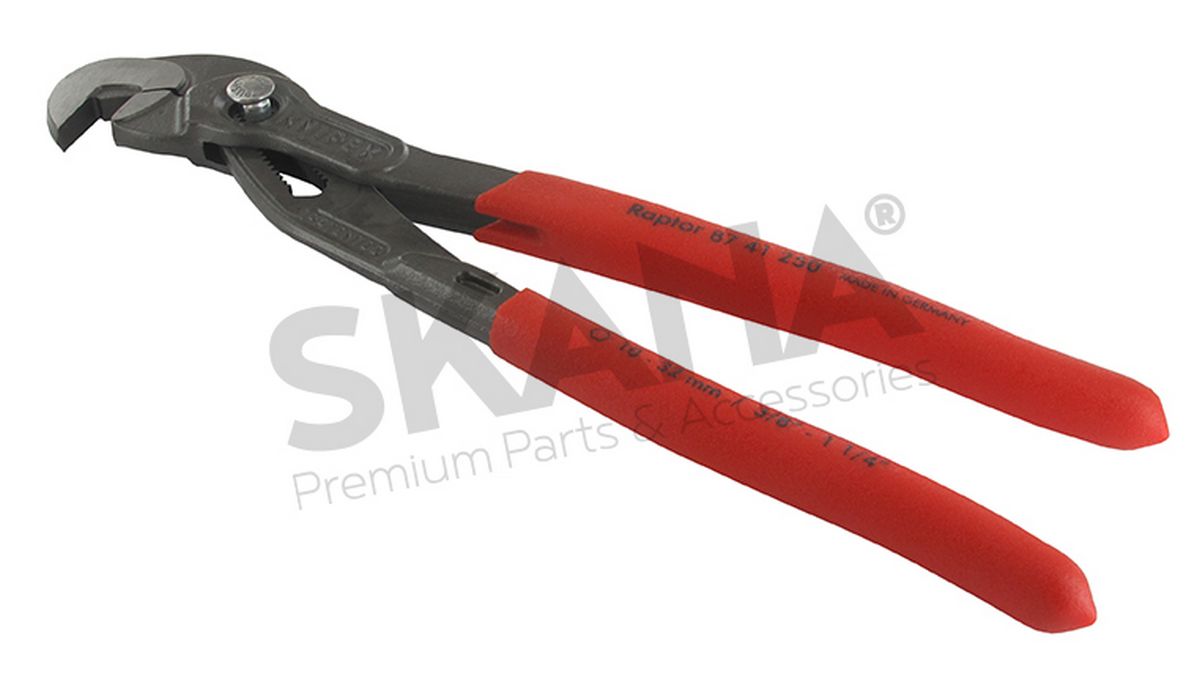 Pince ajustable KNIPEX universelle pour écrous et vis métriques ou en pouces ajustable de 10 à 32 mm (3/8'' à 1-1/4''). Idéal pour serrer/desserrer les écrous ou vis à pans endommagés, arrondis ou rouillés. Préhension ferme et sûre, autobloquante à partir de 17 mm. Longueur: 260 mm. Poids: 328 g