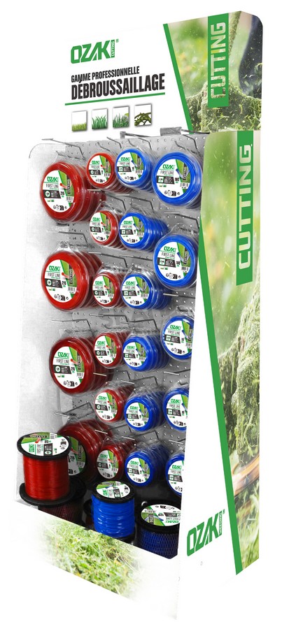 Présentoir avec assortiment de fil OZAKI en rond et carré. Composition: 6 x 1512349, 6 x 1512350, 6 x 1512351, 6 x 1510141, 6 x 1510142, 6 x 1512352, 6 x 1510137, 6 x 1510138, 6 x 1510139, 6 x 1510140, 6 x 1512334, 6 x 1512335, 4 x 1512842, 4 x 1512843, 4 x 1512844, 4 x 1512845, 4 x 1512846, 2 x 1510144, 2 x 1510145, 2x 1510146, 2 x 1512338, 2x 1510149, 2 x 1510150.