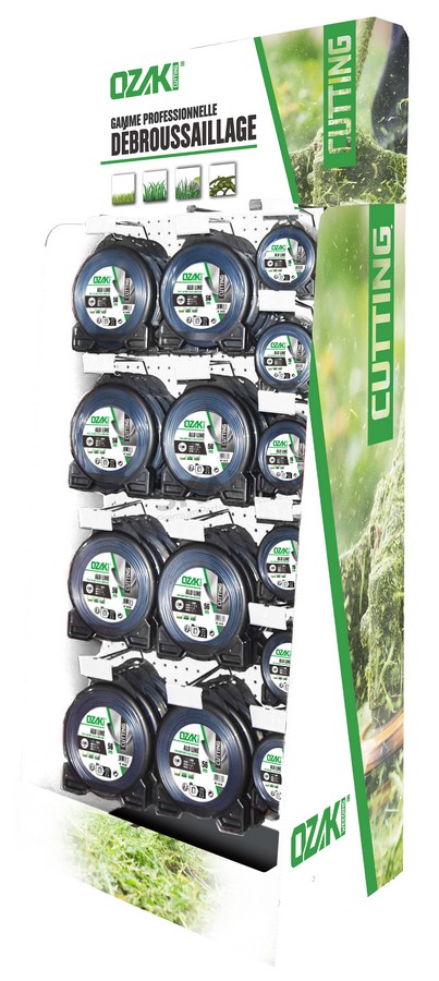 Présentoir avec assortiment de 8 références de fil OZAKI Aluline. Composition: 8 x 1512424, 8 x 1512425, 8 x 1512426, 8 x 1512427, 8 x 1512420, 4 x 1512421, 4 x 1512422, 4 x 1512423.