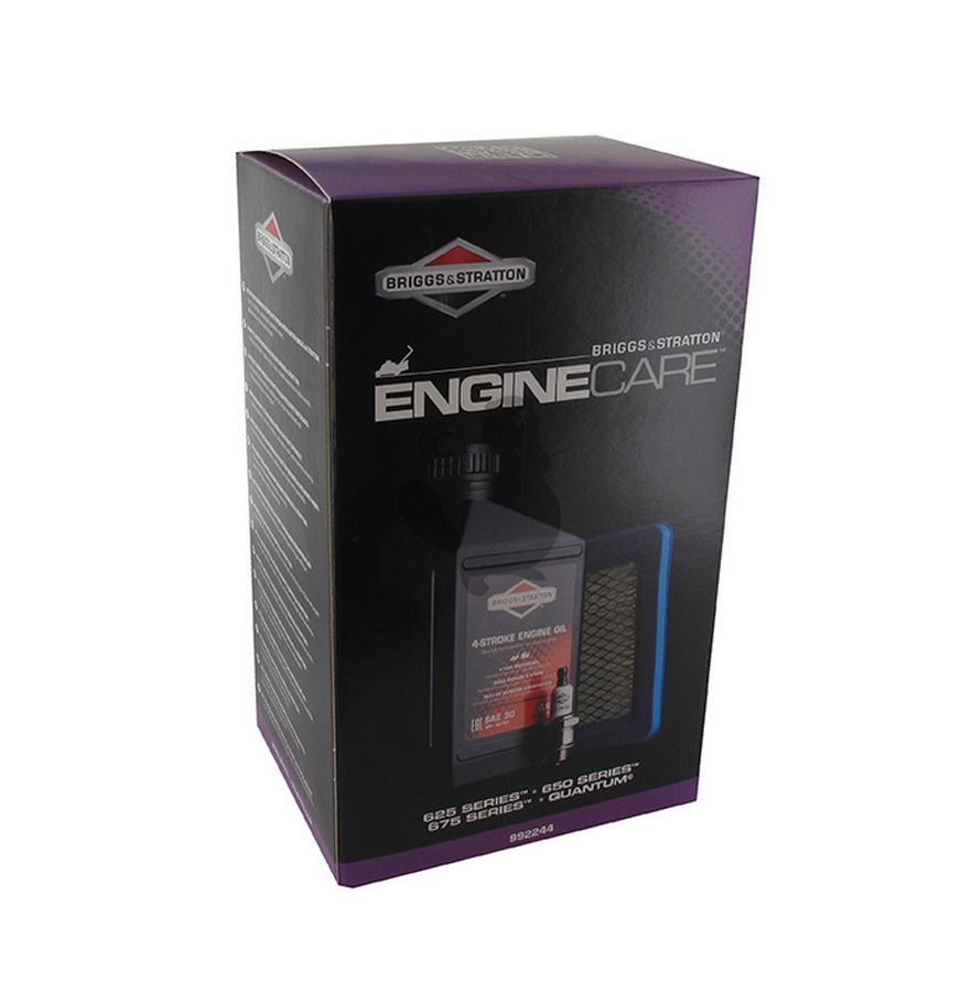 Kit d'entretien pour tondeuses 600 Série, Quantum BRIGGS & STRATTON. Composé d'un bidon d'huile de 0,6 L, d'un filtre à air et d'une bougie. ( Origine : 992244 ). Remplace 992233.