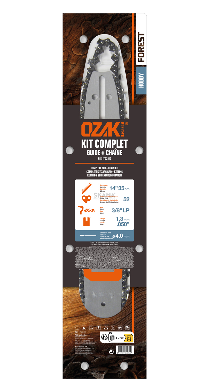 Guide de 35 cm montage ZA + chaine 3/8 lp - 52E OZAKI. Remplace Oregon 140spea041 - Livré sous coque