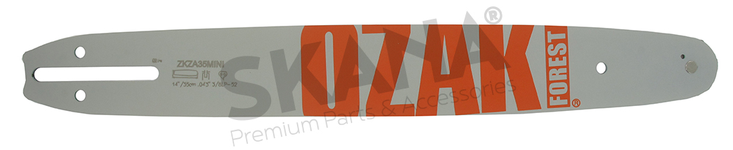 Guide OZAKI pro steel coupe 14" - 35cm pour 52 entraîneurs. Empreinte ZA pas: 3/8 LP .043 (1,1mm). Equivalent OREGON 144MLEA041, ECHO C35S90-52SA-ET