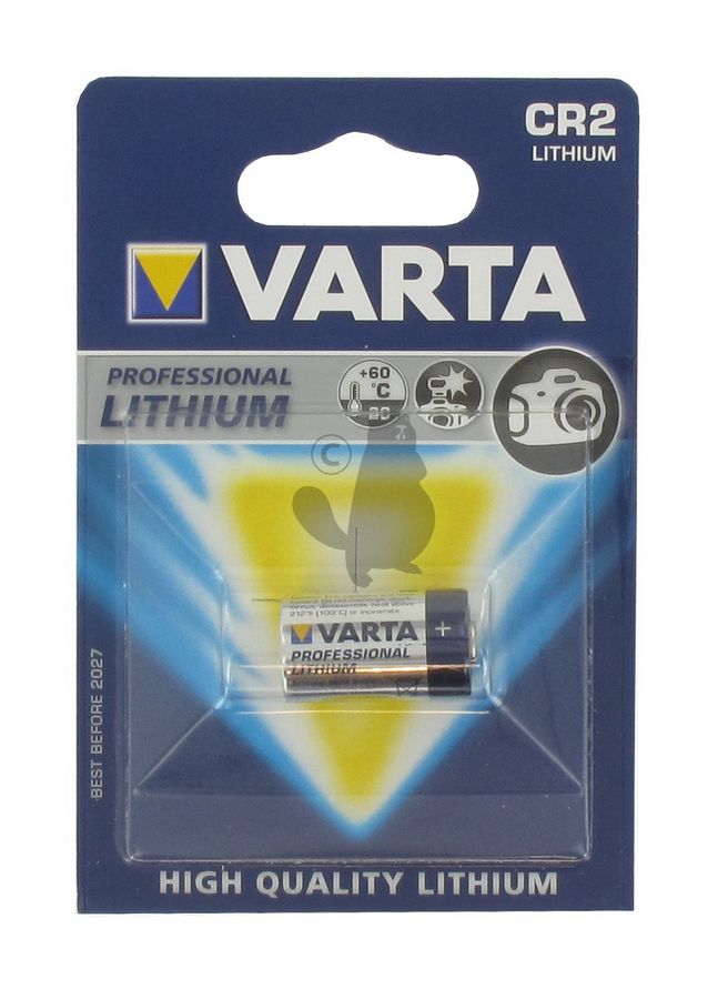Blister pile cylindrique VARTA 3V lithium CR2.