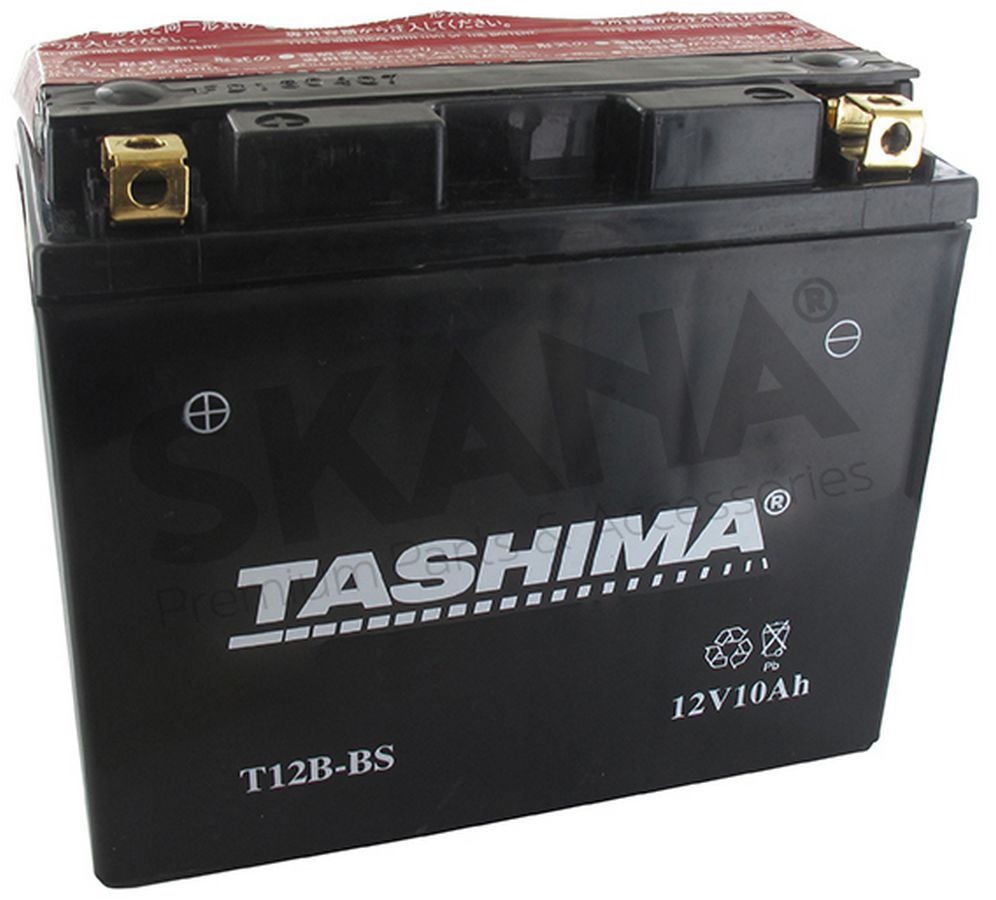 Batterie sans entretien 12V, 10A. L: 150, l: 69, H:130mm, + à gauche pour motos. (livrée avec acide séparé). Batterie à mettre en acide avant d'être délivrée à l'utilisateur. Ne peut être vendue au grand public avec acide séparé (Règlement 1907/2006).