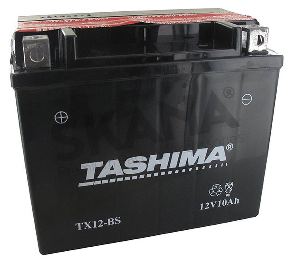 Batterie sans entretien 12V, 10A . L: 150, l: 87, H:130mm, + à gauche pour scooter motos, quads, utilitaires. (livrée avec acide séparé). Batterie à mettre en acide avant d'être délivrée à l'utilisateur. Ne peut être vendue au grand public avec acide séparé (Règlement 1907/2006).