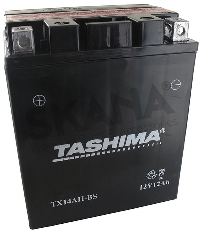 Batterie haute performance sans entretien 12V, 12A. L: 134, l: 89, H:166mm, + à gauche pour motos, quads, motoneige, utilitaire . (livrée avec acide séparé). Batterie à mettre en acide avant d'être délivrée à l'utilisateur. Ne peut être vendue au grand public avec acide séparé (Règlement 1907/2006).