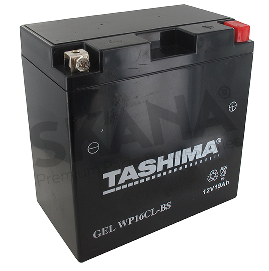 Batterie gel/agm 12V WP, 19A. L: 173, L: 100, H:152mm, + à droite.