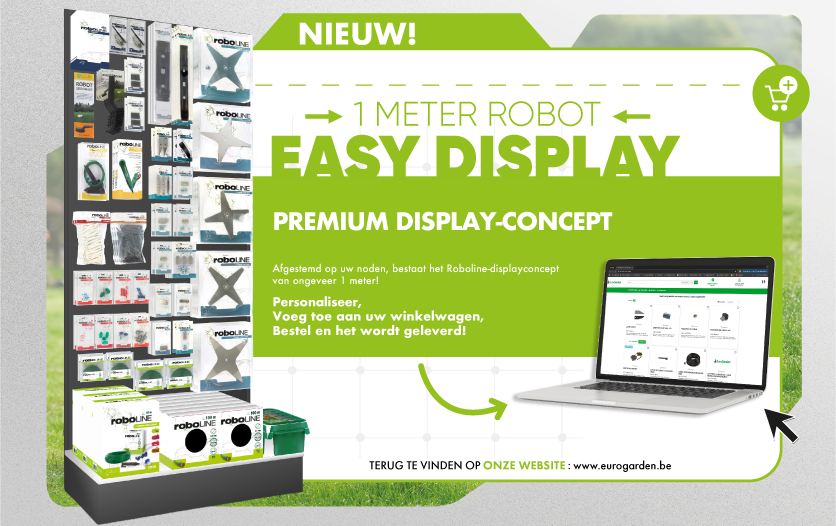 Het Roboline displayconcept helpt u om uw aanbod te versterken in een snelgroeiende markt van robotmaaiers en tuinrobots. Mis deze opportuniteit niet en start vandaag met uw winkelinrichting.