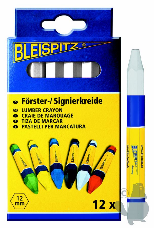 Doosje met 12 stuks bosbouwmarkeringskrijt - kleur wit. Voor droge of vochtige oppervlakten. Zeer weerbestendig. Zeskantig. 120x12mm.