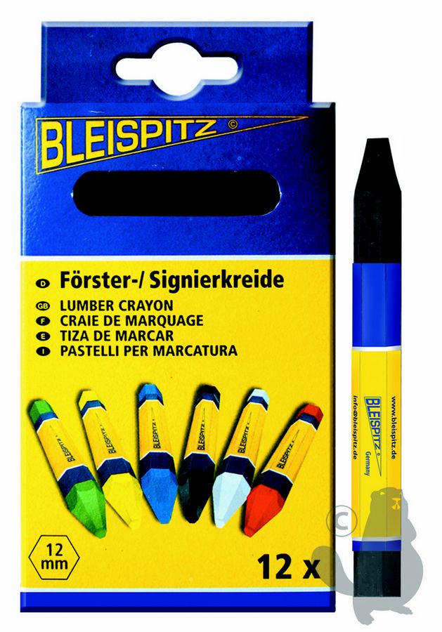 Doosje met 12 stuks bosbouwmarkeringskrijt - kleur zwart. Voor droge of vochtige oppervlakten. Zeer weerbestendig. Zeskantig. 120x12mm.