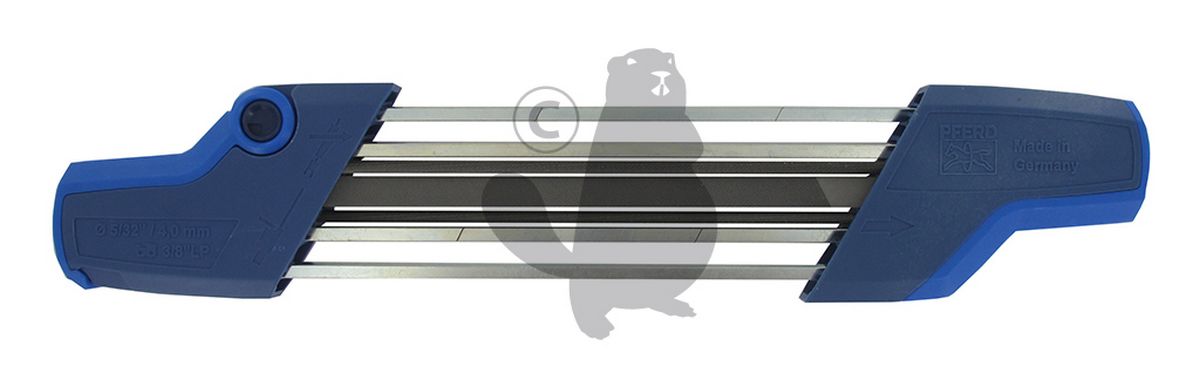 PFERD 2-IN-1 vijlhouder. Wordt geleverd met 2 ronde vijlen Ø: 4,0 mm (ons artikelnummer 9301344) en 1 vierkante dieptebegrenzervijl van 9 × 6 mm (ons artikelnummer 9301341).