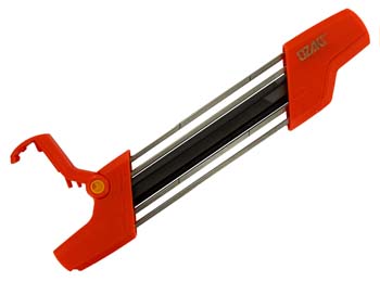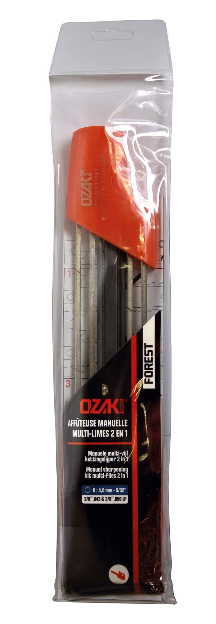 OZAKI 2-IN-1 vijlhouder. Geleverd met 2 ronde vijlen Ø: 4,0mm en 1 vierkante vijl 9x6mm.