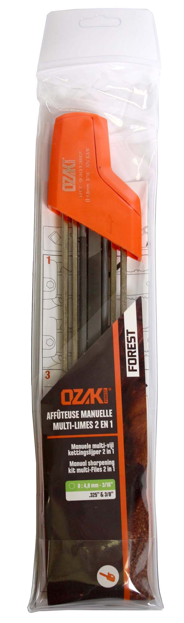 OZAKI 2-IN-1 vijlhouder. Geleverd met 2 ronde vijlen Ø: 4,8 mm en 1 vierkante vijl 9x6 mm.