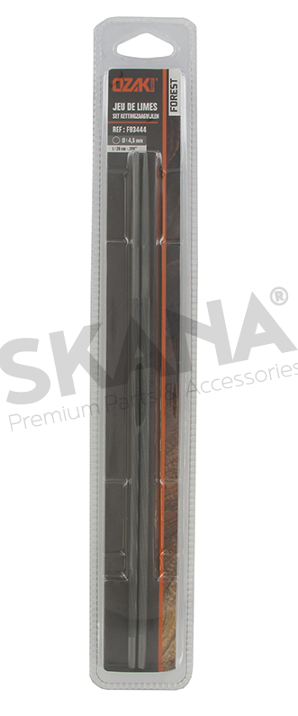 OZAKI ronde vijl voor kettingzaagkettingen. Diameter: 4,5 mm (11/64"), Lengte: 20 cm (8"). Blisterverpakking met 2 vijlen.