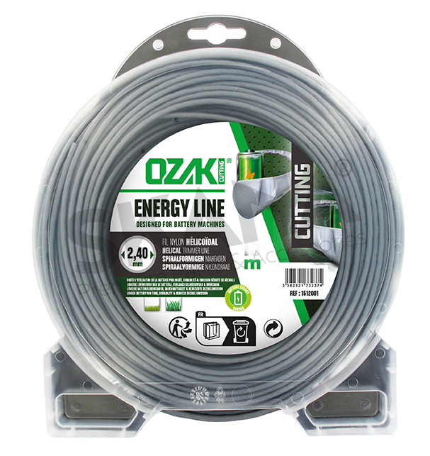 Blister nylon maaidraad Ozaki premium rond. Gepanteerd ontwerp voor optimale gebruiksduur van de accu. Lengte : 87 m, Ø: 2,40mm
