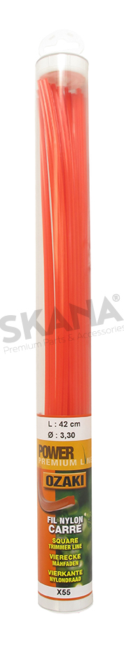 Tube van 55 stuks nylondraad vierkant OZAKI PREMIUM - Lengte: 42 cm, zijkant: 3,30 mm.