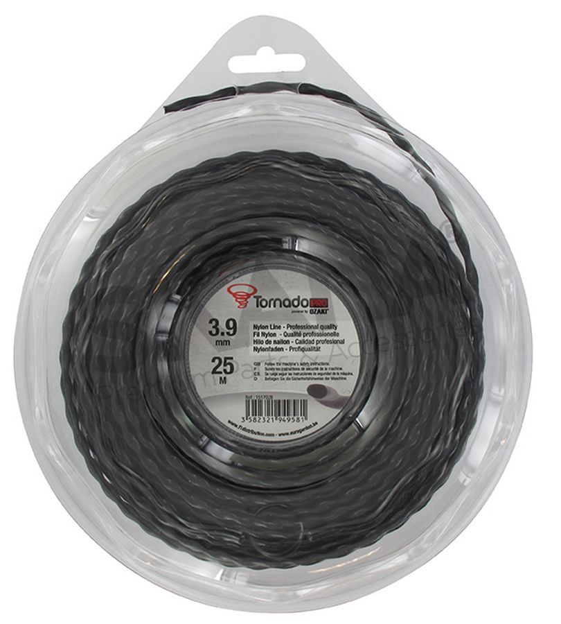 OZAKI TORNADO PRO - Spiraalvorm 3,9 mm x 25 m (Blister) - zwart. (aerodynamisch, geluidsarm, trimmerdraad, maaidraad, nylondraad, stille maaidraad)
