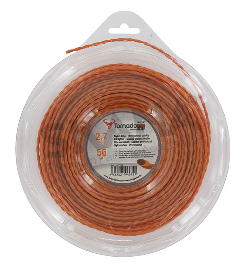 OZAKI TORNADO PRO ALUCUT - Spiraalvorm 2,7 mm x 56 m (Blister) - oranje. (aerodynamisch, geluidsarm, Aluline, trimmerdraad, maaidraad, nylondraad, stille maaidraad)