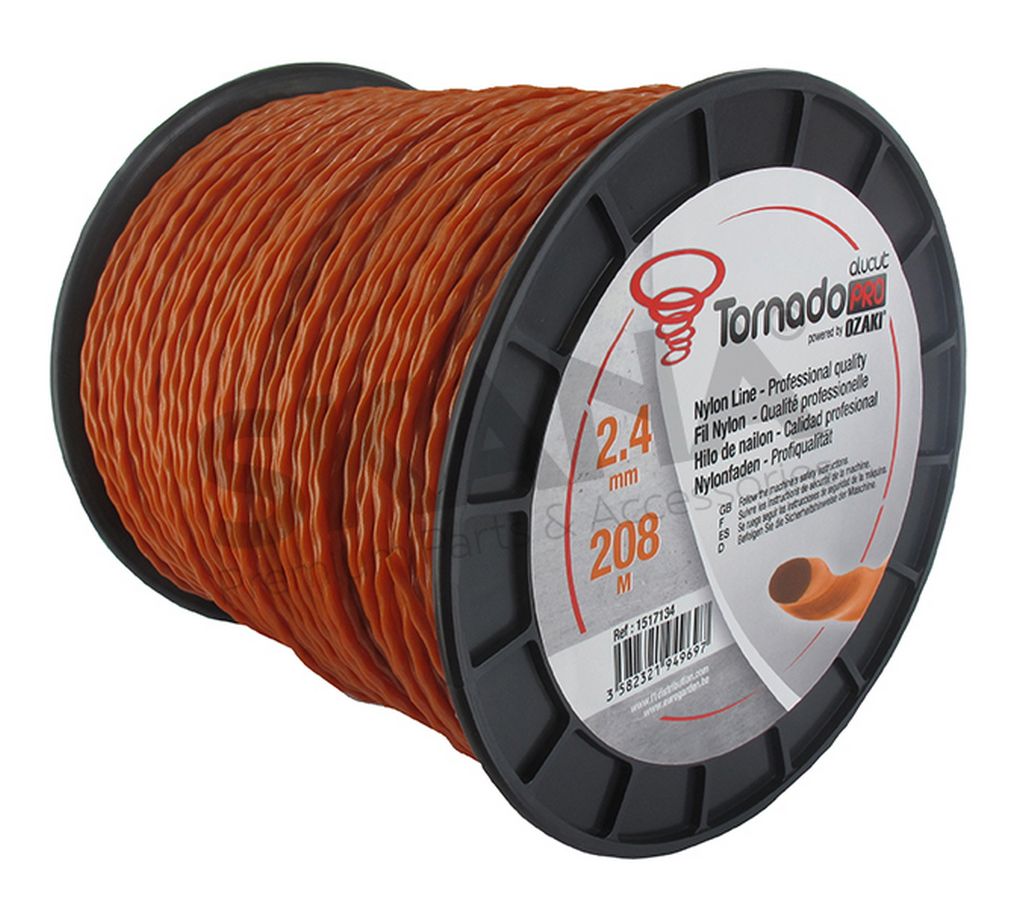 OZAKI TORNADO PRO ALUCUT - Spiraalvorm 2,4 mm x 208 m (Rol) - oranje. (aerodynamisch, geluidsarm, Aluline, trimmerdraad, maaidraad, nylondraad, stille maaidraad)