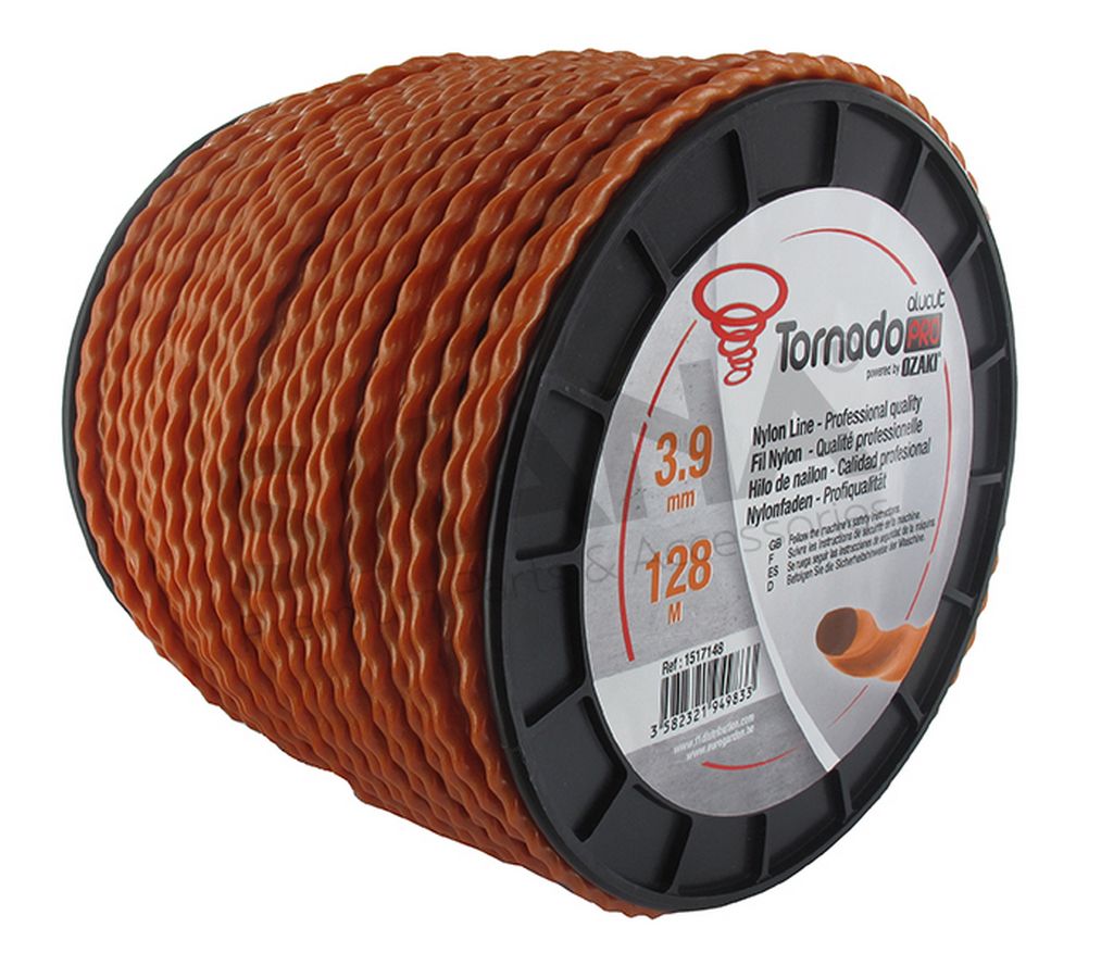 OZAKI TORNADO PRO ALUCUT - Spiraalvorm 3,9 mm x 128 m (Rol) - oranje. (aerodynamisch, geluidsarm, Aluline, trimmerdraad, maaidraad, nylondraad, stille maaidraad)