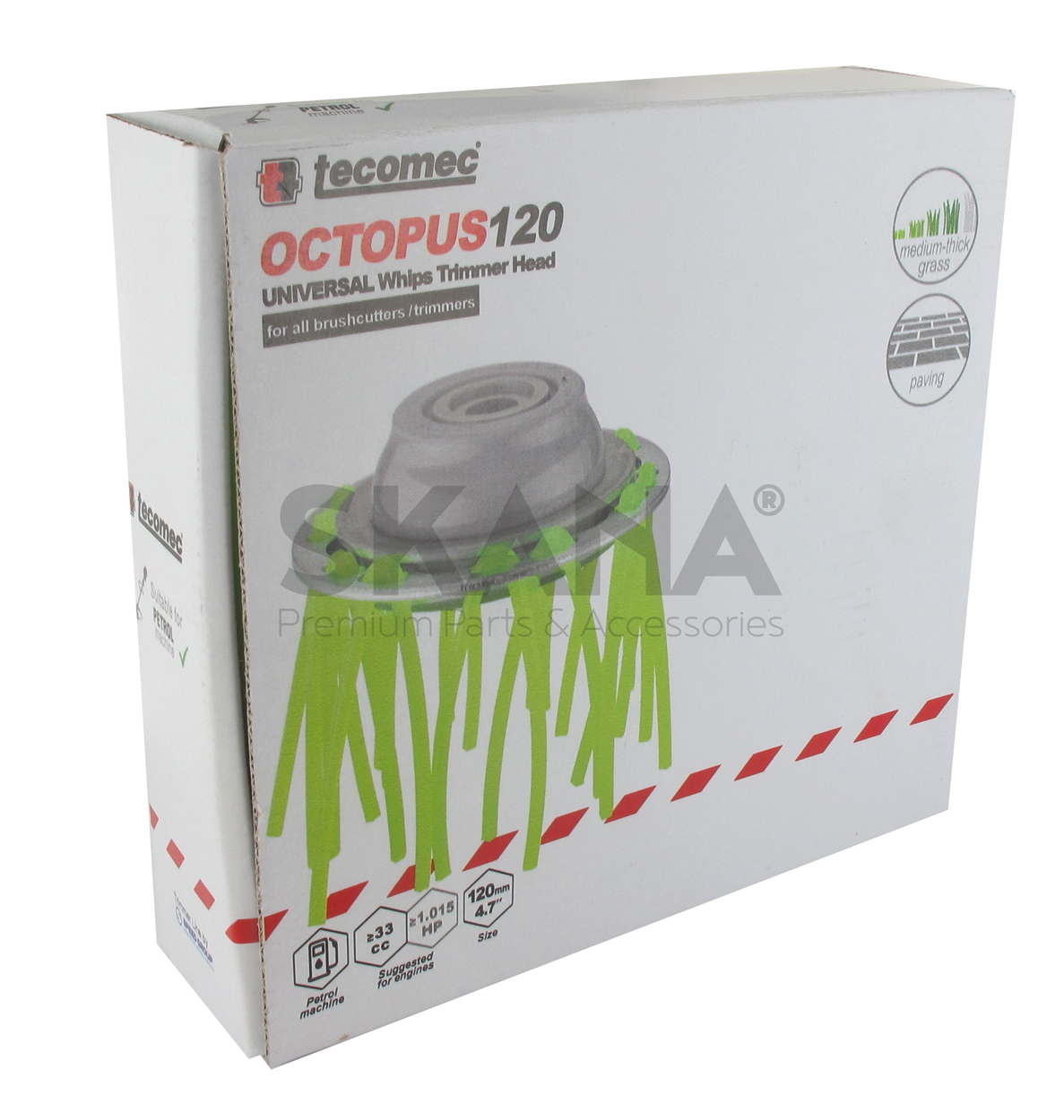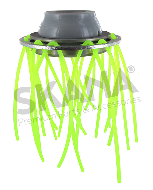 2 in 1 universele kop voor bosmaaier of borstel. Voor bosmaaiers vanaf 33cc cilinderinhoud. Voor het reinigen van in elkaar grijpende straatstenen, betonnen stoepranden, enz. of bij conventioneel gebruik. Doorsnee 120mm. Draad tot 3,5 mm bij bosmaaiergebruik, 5 mm bij borstelgebruik. Wordt geleverd met 12 strengen vierkante draad, 30 cm x 3,3 mm.