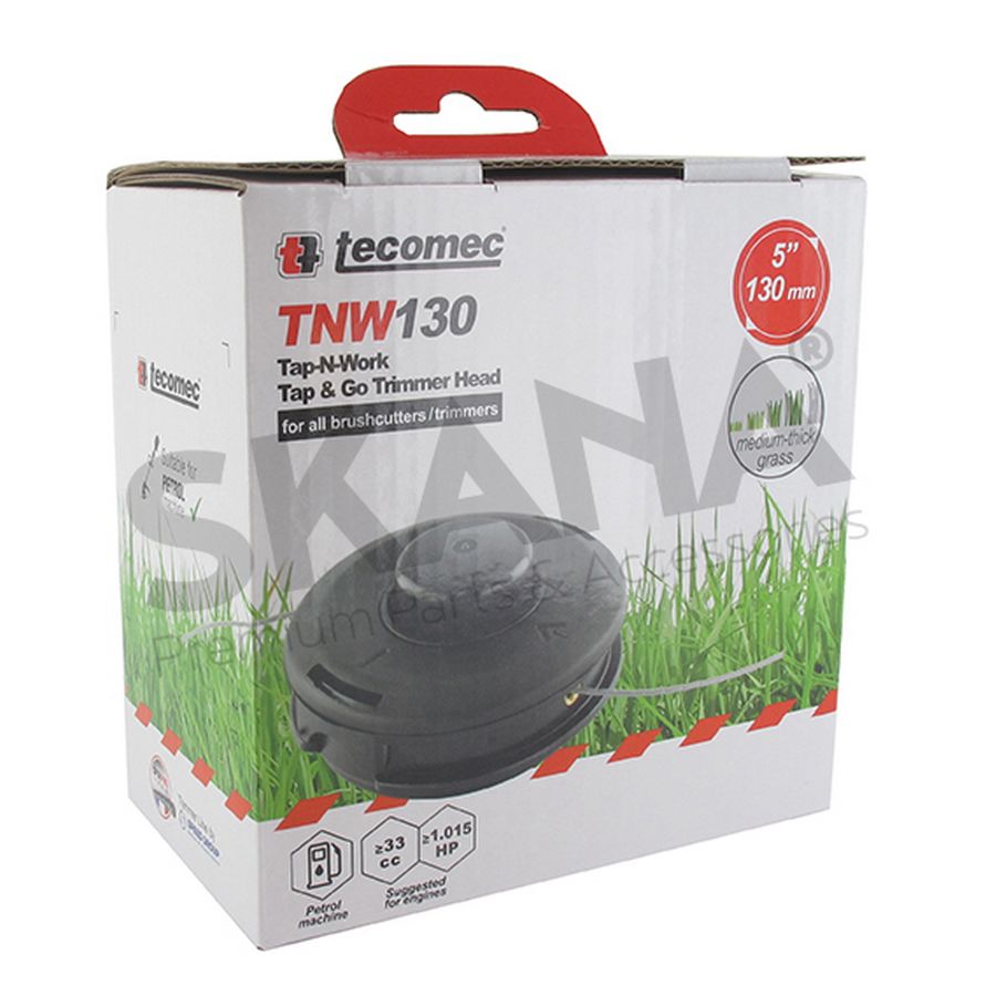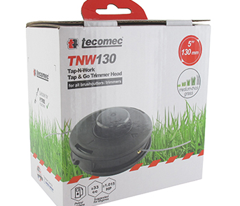 Nylondraadkop TAP-N-GO TECOMEC diameter: 130 mm. Geleverd met ronde schroefdraad diameter: 2,7 mm en 2 linkse draadadapters: M8 x 1,25 mannelijk, M10 x 1,25 vrouwelijk.