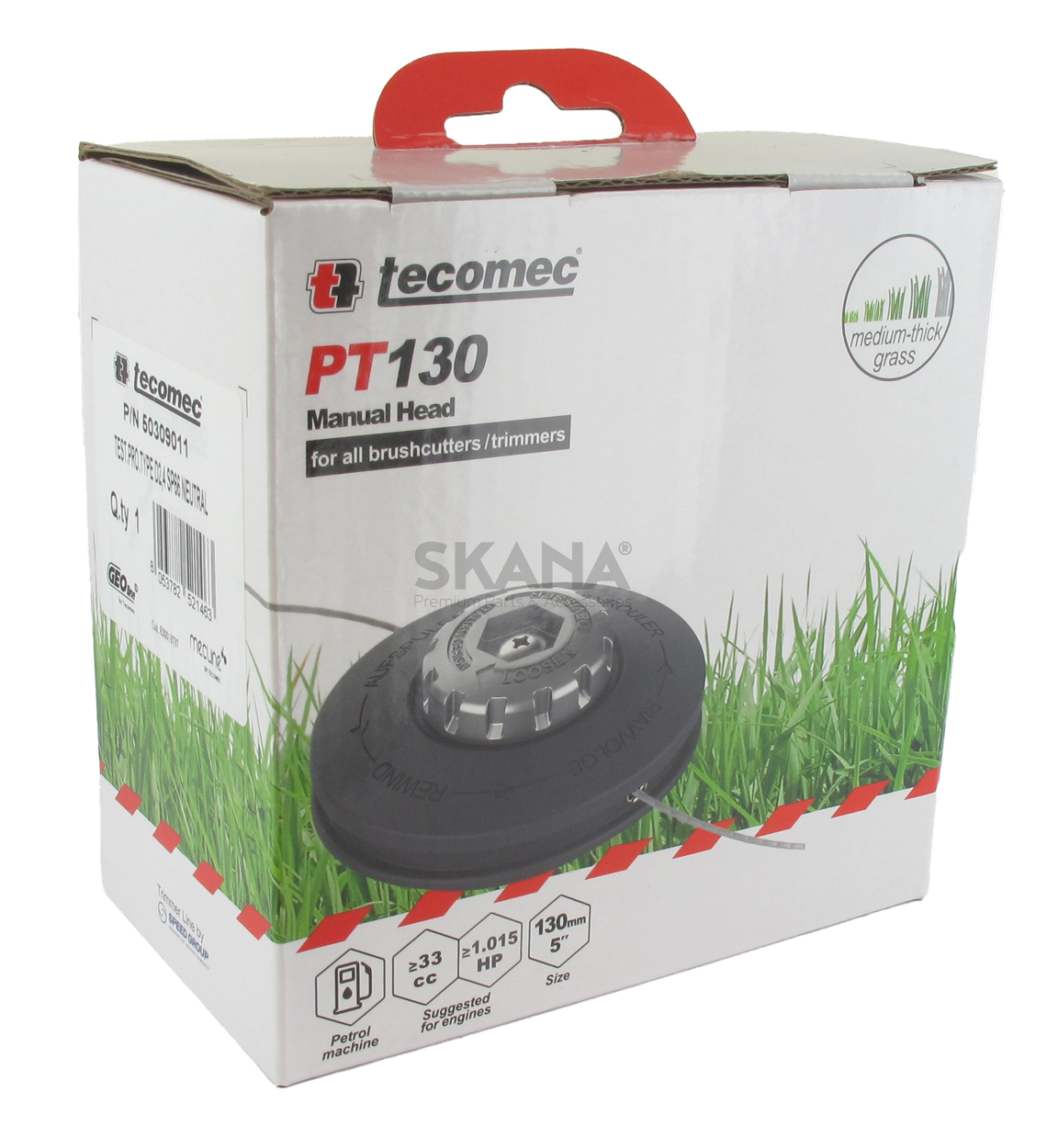 2-draads nylon pro kop met TECOMEC metalen knop geleverd zonder adapter, met handmatige afwikkeling.