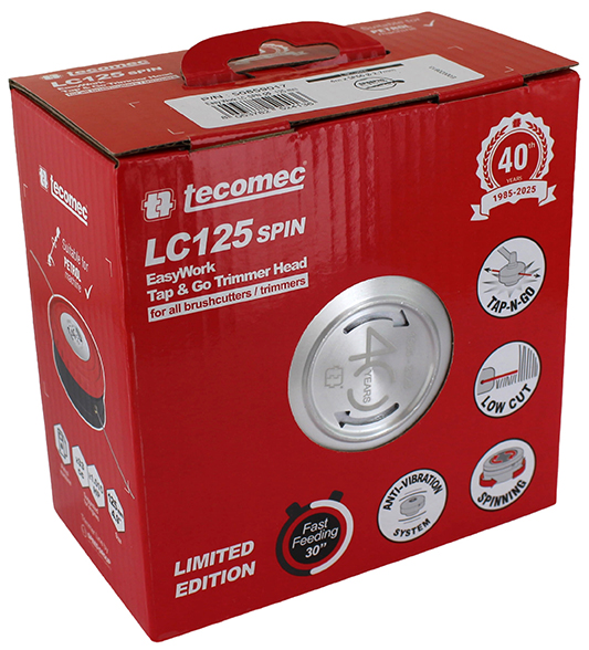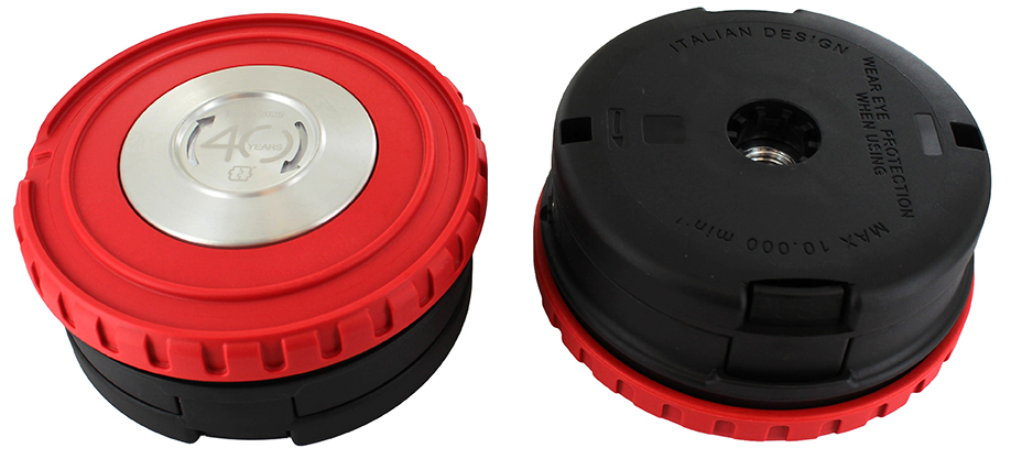Universele 2-draads kunststof meeraderige spoelkop met laag profiel en metalen schuifkom. EasyWork snellaadsysteem en Tap&Go bedieningssysteem. Diameter 125 mm. Geschikt voor draden met een diameter van 2,4 tot 4,0 mm. Geschikt voor benzine- (max. 40 cc) en elektrische (max. 1230 pk) machines.