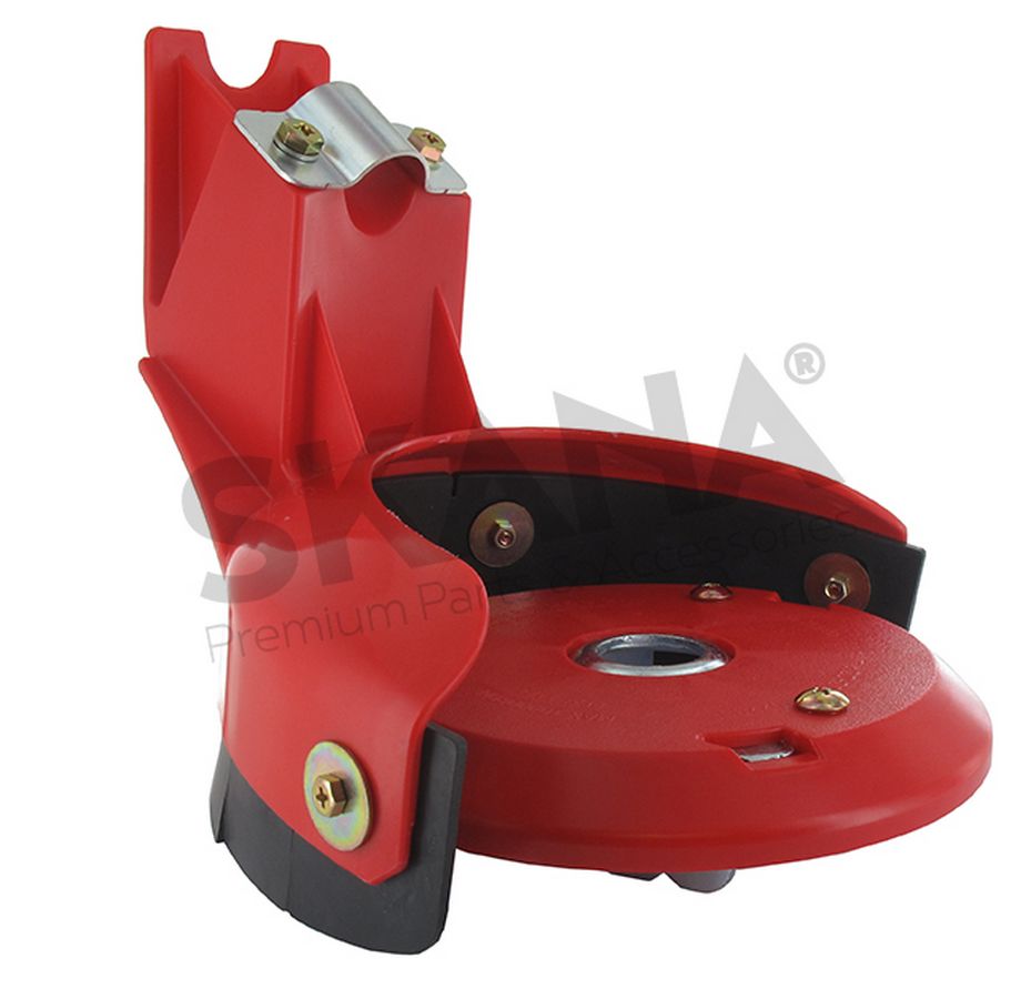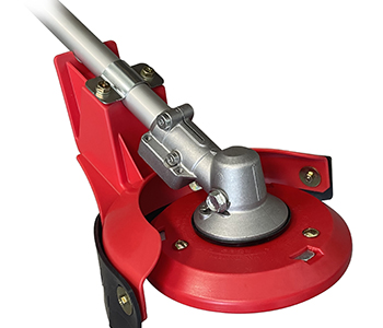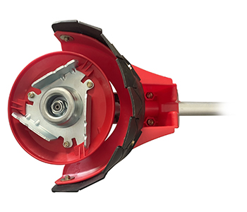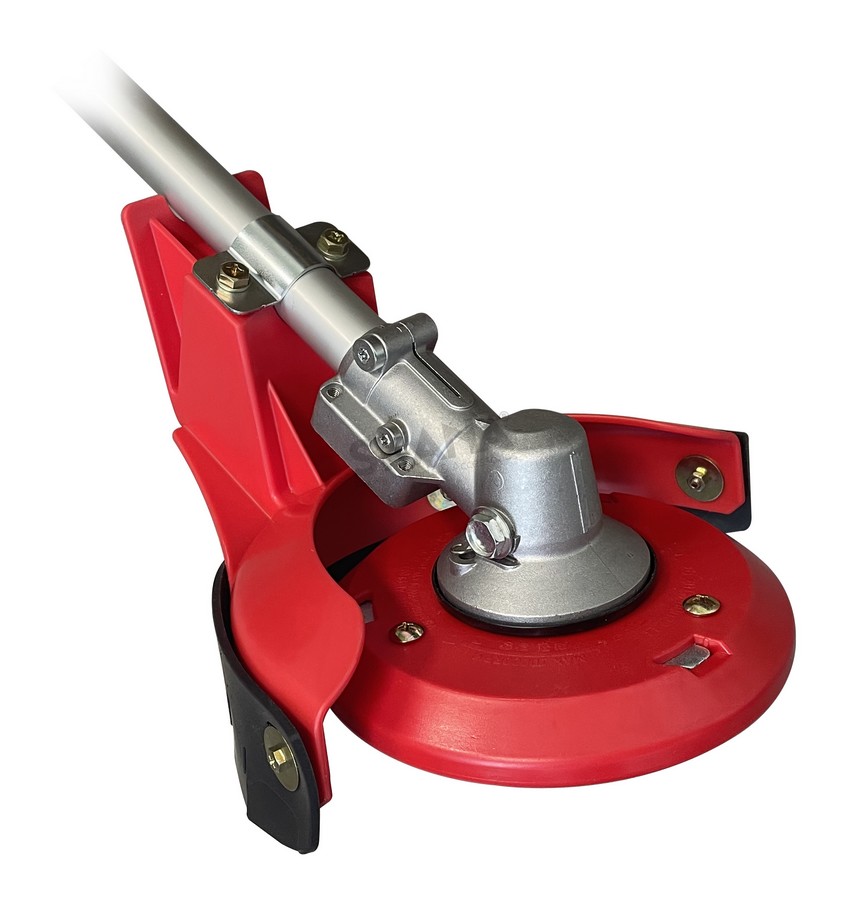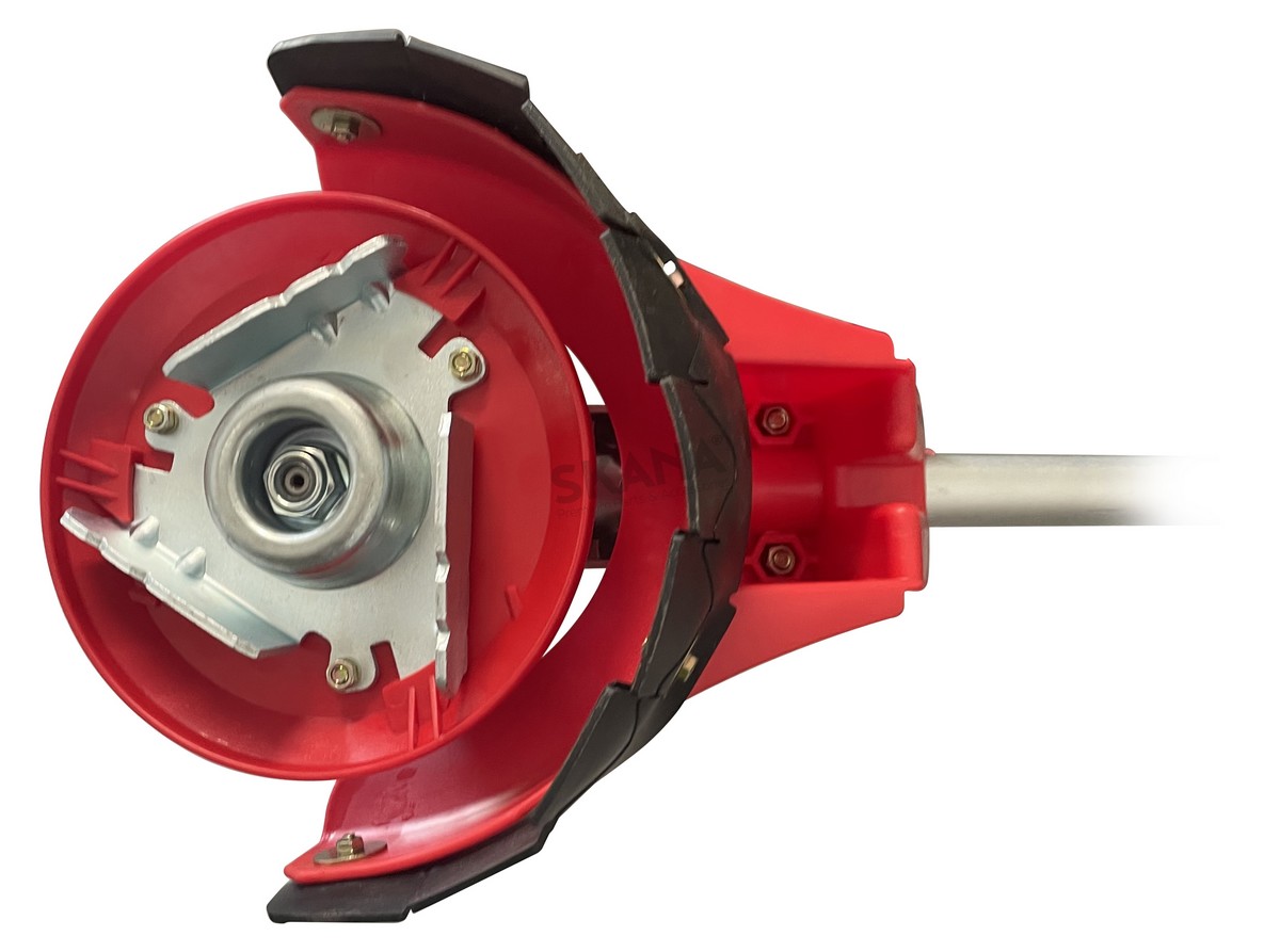 Universele schoffelkop met 3-tands schoffelmes en beschermkap voor onkruid. Geschikt voor de meeste bosmaaiers.