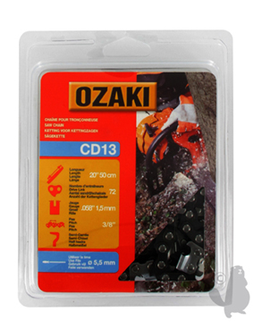 Zaagketting OZAKI, halfhaaks, in blisterverPakking: 3/8" - .058 (1,5mm) - 72 schakels.