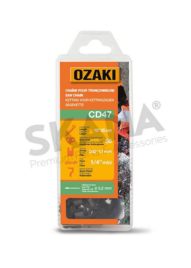 Zaagketting OZAKI halfhaaks, in blisterverpakking: 1/4" .043 (1,1mm) 56 schakels( E56 ).