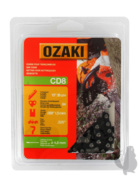 Zaagketting OZAKI, halfhaaks, in blisterverPakking: .325" - .058 (1,5mm) - 64 schakels.